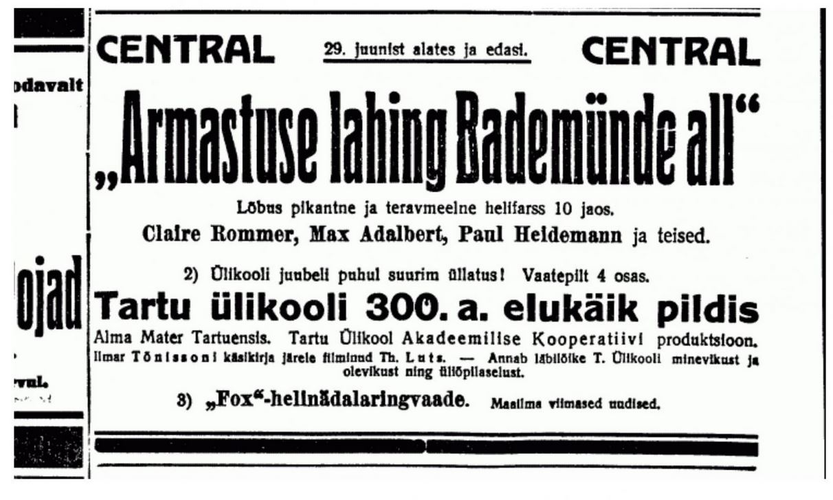 Rahvusülikooli 100. sünnipäevaks jõuab publiku ette Theodor Lutsu dokumentaalfilm “Alma mater Tartuensis” restaureeritud versioon. Algne film valmis Tartu Ülikooli 300. aastapäevaks 1932. aastal.